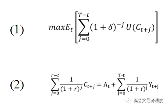 下面的综述技术性较强,对数学不感兴趣的读者可以跳过。生命周期—持久收入模型的基本公式如下