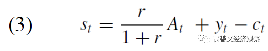 St代表t时刻储蓄, Ct 代表t时刻消费,Yt代表t时刻劳动收入,At代表t时刻非人力财富,r是利率。