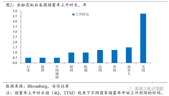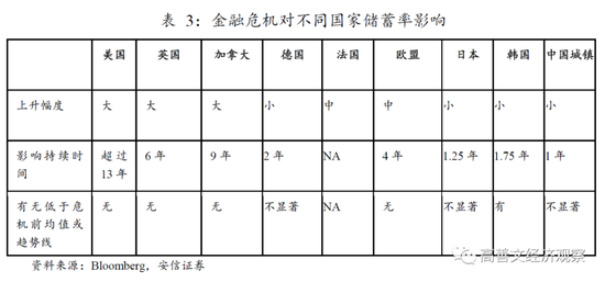 回顾各国在金融危机期间储蓄率的变化,可以发现它和疫情期间呈现了类似的规律,原先储蓄率较高的国家上升幅度小,储蓄率低的国家上升幅度大。当然这也与不同国家受到金融危机冲击的程度不同有关。
