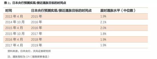 事实上,2013年至今日本整体和核心通胀水平(剔除消费税影响)均低于通胀目标2%,日本央行对于实现/接近通胀目标的时间点也不断推后,2018年之后日本央行在《经济活动与物价展望》中已经删除了对于通胀水平达到2%的时间预测。