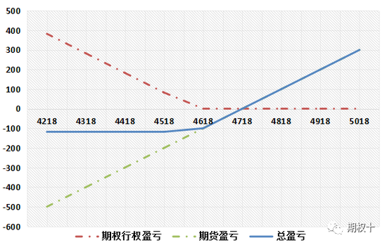 对于使用看跌期权熊市价差策略为期货多头做保护的情况,如果未来期货价格跌破期权较低行权价4300,则有一定程度的风险暴露,看跌期权熊市价差策略是在买入一个看跌期权的基础上,再卖出一个行权价更低(更虚值)的看跌期权,成本相比与只买入一个看跌期权更低,适用于愿意多容忍一些风险暴露以换取更低成本对期货多头进行保护的投资者。