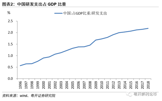 要求全社会研发经费投入“年均增长大于7%,力争投入强度高于“十三五”时期实际”。根据世界银行数据,截止2018年,中国的研发支出占GDP比重为2.19%,而美国、日本同期的研发支出占GDP比重分别为2.84%、3.26%,与发达国家相比,我国的研发投入仍有提升空间。十四五规划对于全社会研发经费投入增长目标的设定,也从政策端对加大研发投入给予支持,预计后续研发支出的GDP占比仍将逐年提升。
