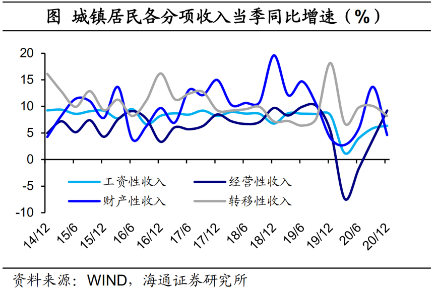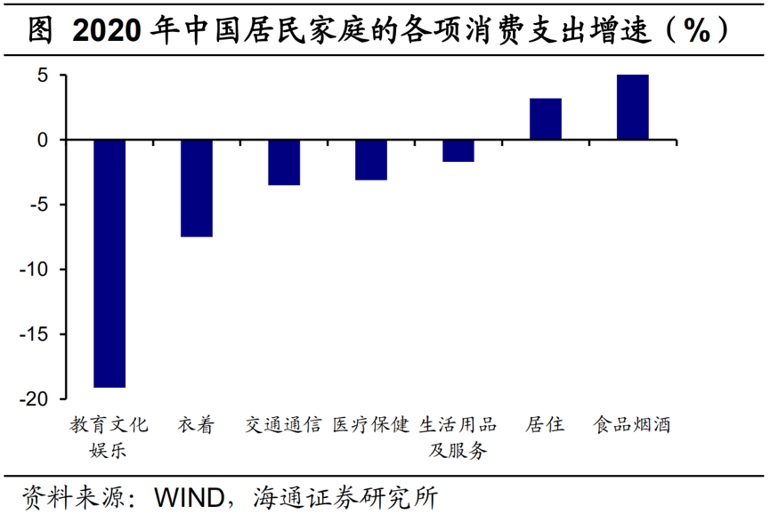 另一方面,疫情防控决定终端消费难回正常增长。人口的流动和集聚活动仍然没有回归正常,相关的消费就难以恢复。从居民端看,在2020年的各项消费支出中,教育文娱和交通通信支出的占比达到22.6%,但是这两项支出增速在去年分别下滑19.1%和3.5%,对消费的恢复形成拖累。而这两项消费活动也正是需要人口流动和集聚才能推动。从企业端看,当前餐饮业的收入增速大幅低于正常水平,意味着消费依然受到疫情的压制。
