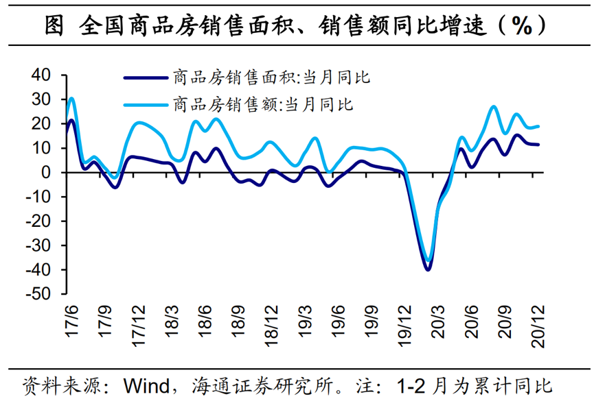 去年新冠疫情爆发后,我国实行了宽松的货币政策,房地产市场快速回暖,对GDP的拉动飙升到2009年的水平。截至2020年12月,我国房地产的销售面积和销售额同比增速分别为11.5%和18.9%,均高于疫情前的水平。