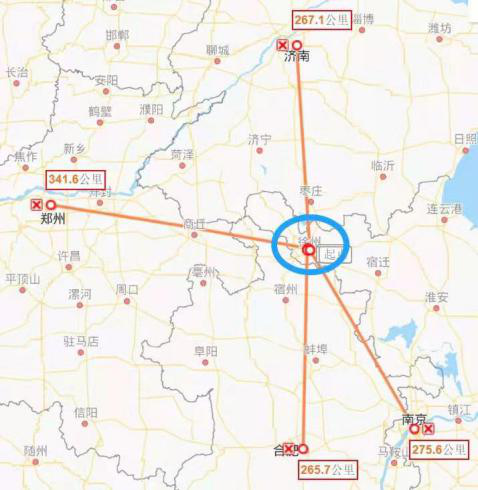 区位也是个问题。淮海区域内苏北、皖北、豫东和鲁南都位于边缘地带,不少城市的市中心距离省会城市的直线距离都达到200公里以上,使得四地都较少能得到省级政府的重视和投入及省会城市的辐射效应,逐渐成为苏皖鲁豫四省的“发展洼地”。