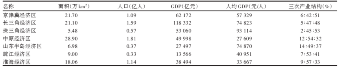 2015年淮海经济区与国内主要经济区发展情况比较