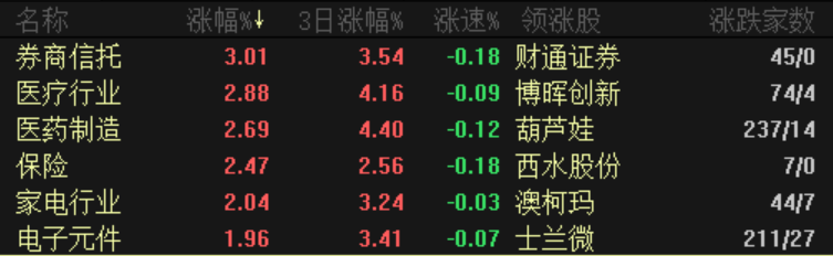 经历了几天的调整后,今日各大市场股指又开启集体上涨模式。截至午盘收盘,上证指数午盘涨逾1%,创业板指涨2.4%,两市半日成交额近6300亿元。盘面上,医药、证券、半导体、白色家电等板块涨幅居前;饮料制造、有色冶炼加工等板块走弱。