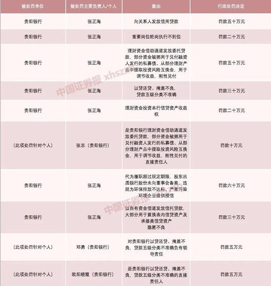 贵阳银行被罚案由主要涉及:因理财资金借助通道发放委托贷款,部分资金被挪用于兑付融资人发行的私募债、从部分理财产品中提取投资风险互换金,用于调节收益,刚性兑付被罚50万元;因理财资金投资本行信贷资产收益权被罚20万元等。