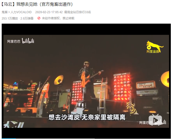 2017年11月14日进驻B站的阿里巴巴,粉丝70万,发布视频447个。疫情期间,阿里巴巴在B站官号发布了《我想去见他》的鬼畜视频,视频中,马云用带有浓重方言的口音唱起Rap,十分洗脑,与雷军的“Are you OK”有相似之处,同样展现了老板严肃身份之外的平民化和自黑的一面。