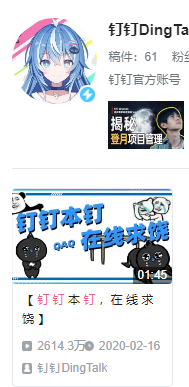 2月16日20点24分,钉钉在B站发布了《钉钉本钉,在线求饶》类鬼畜视频,刷了许多人的朋友圈,吃瓜网友分别表示:“可爱”、“下次一定”、“泪目”……再次证明了,“鬼畜赚人心”的定律。目前,这条视频已经收获了2613万点击量,创下了企业官方号的纪录。