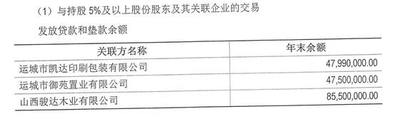 记者注意到,骏达木业和凯达印刷在成为失信被执行人期间,都与运城农商行有关联贷款。财报显示,截至2019年末,骏达木业尚未归还的贷款余额为8550万元,凯达印刷尚未归还的贷款余额4799万元,两者共计超过1.3亿元。