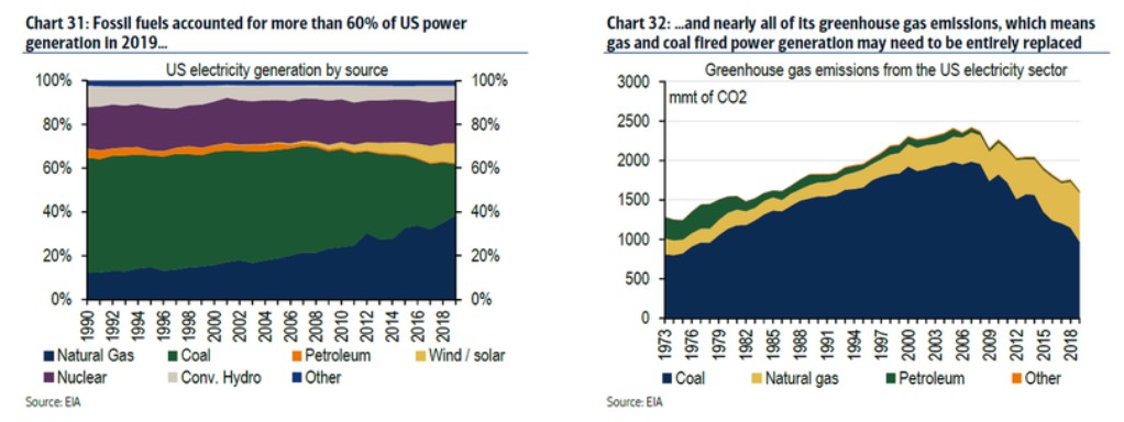 与此相关的是,美国银行指出,美国总统候选人乔•拜登(Joe Biden)的政策大纲引起了市场的关注。拜登表示,如果当选,将在2050年实现全美净零排放量的目标。在过去的15年里,美国的排放量下降了15%以上。然而,这一下降的部分原因是工业活动的减少和燃煤电厂被联合循环天然气电厂所取代。