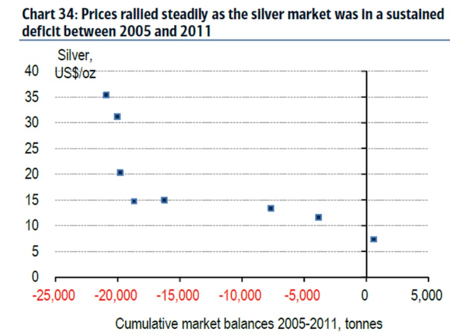 从潜在的影响来看,白银的市场均衡量在过去五年(2016-2019年)平均增加1100吨,而白银的供应量却呈现下降趋势。潜在的需求增加可能导致白银供不应求。
