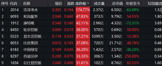 细价股遭资金疯狂炒作,浩泽净水一度涨超2倍,收涨175%,报价0.305港元。在公司暴涨之际,公司负面问题频发。上半年一名执行董事3名非执行董事离任。公司年度业绩首先亏损,从去年盈利近1个亿到2019年底亏损8.9亿港元。目前公司依然无处无核数师状态。其他细价股方面,康特隆涨42%,钜京控股涨38%,易生活控股、比优集团、中国绿宝等集体涨超36%。