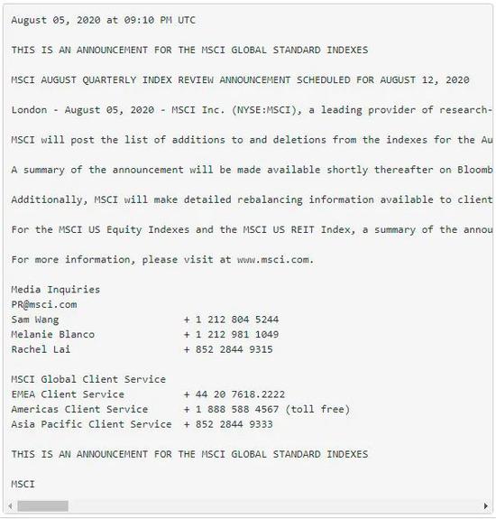 消息面上,国际指数编制公司MSCI将于当地时间8月12日宣布8月份季度指数评审结果,变动结果将于8月31日收盘后生效。