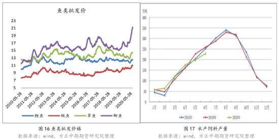 今年上半年因为疫情影响,水产品的运输消费等均受到损害,再加上前段时间南部地区的持续强降雨,对水产养殖来说更是雪上加霜,在需求受到的严重损害的情况下,水产饲料的产量自然也出现了明显下滑。根据国家统计局数据显示,今年5、6月份水产饲料产量同比下降1.2%和11.6%。