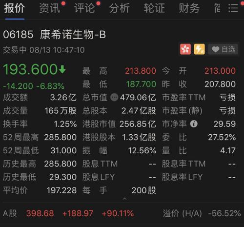 但虽然近期表现不佳,但截至昨天(8月12日),康希诺港股的股价已经从年初的58.95元/股涨到了207.8元/股,涨幅为252.5%。