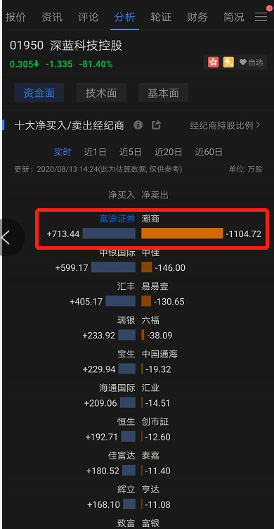 根据富途证券,本次出货方也是潮商证券,净卖出1100万股,或成本次斩仓元凶。
