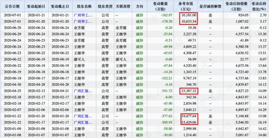 特别是董事长王继华,从2019年11月开始减持起,持股比例从15.91%降低到2020年7月的13.13%,累计减值市值高达9.84亿。