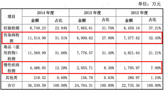 2015年上市前,万孚生物产品以妊娠检测和毒品检测为主,这两块业务占了55%以上的收入。