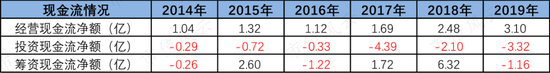 万孚生物一直以来经营活动现金流净额都是正的,不过投资现金流净额为负,超过前者,所以需要融资来“补血”。