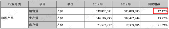 体外诊断产品2019年收入有16.09亿,同比增长33.96%;销售量3.39亿人份,同比增长12.17%,比收入增速低。