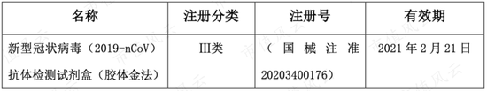 2020年2月21日,万孚生物抗体检测试剂盒(胶体金法),正式获得医疗器械注册证,15分钟能出检验结果。