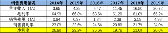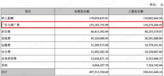 扒开销售费用明细也可以看出,广告与推广费不低,2018年为第一大销售费用支出,2019年也有1.53亿,为第二大销售费用支出。