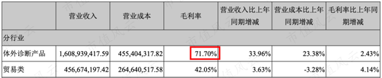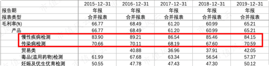 2017年-2019年毛利率分别为60.99%、65.21%、67.39%,主要是贸易类收入拉低了整体公司的毛利率,而体外诊断产品的毛利率为71.70%,绝对值较高但同行业中不算高。