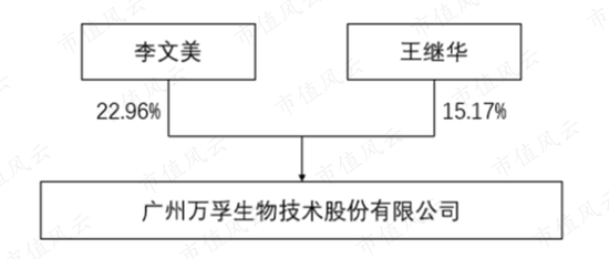 万孚生物(300482.SZ)的实际控制人有两位:李文美(女)和王继华(男),两人为夫妻关系,合计直接持股38.13%,其中王继华任董事长,李文美任总经理。
