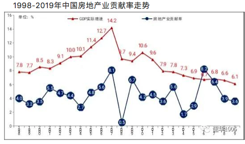 其中,2016年达8.2%的历史最高值后,在国家坚持“房住不炒”的定位下,房地产业贡献率明显回落,至2019年仅为3.6%。