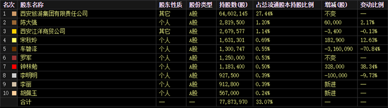 按照公告披露信息计算,磐京基金此前持股的平均成本为9.16元,合计耗资约1.1亿元。目前,磐京基金已跻身公司第二大股东,仅次于控股股东西安旅游集团有限责任公司。