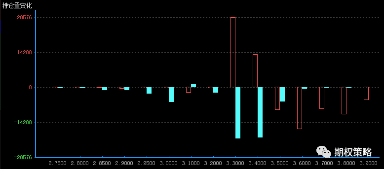 从8月持仓变化来看,认购在3300处增仓最大,认沽持仓再次全面减少,结合隐波变化来看,应该是认沽权利仓投资者主动平仓导致,50ETF压力仍有下移迹象。