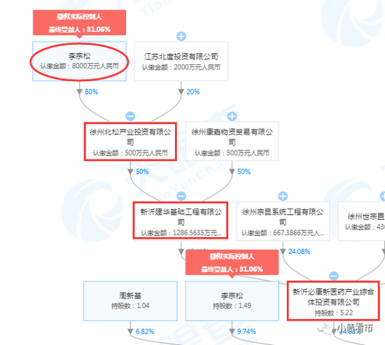 从股权结构上来看,延安必康的控股股东为新沂必康,持股比例为34.96%,穿透后实控人为李宗松,其通过18条直接或间接路径持股,合计持股42.33%。