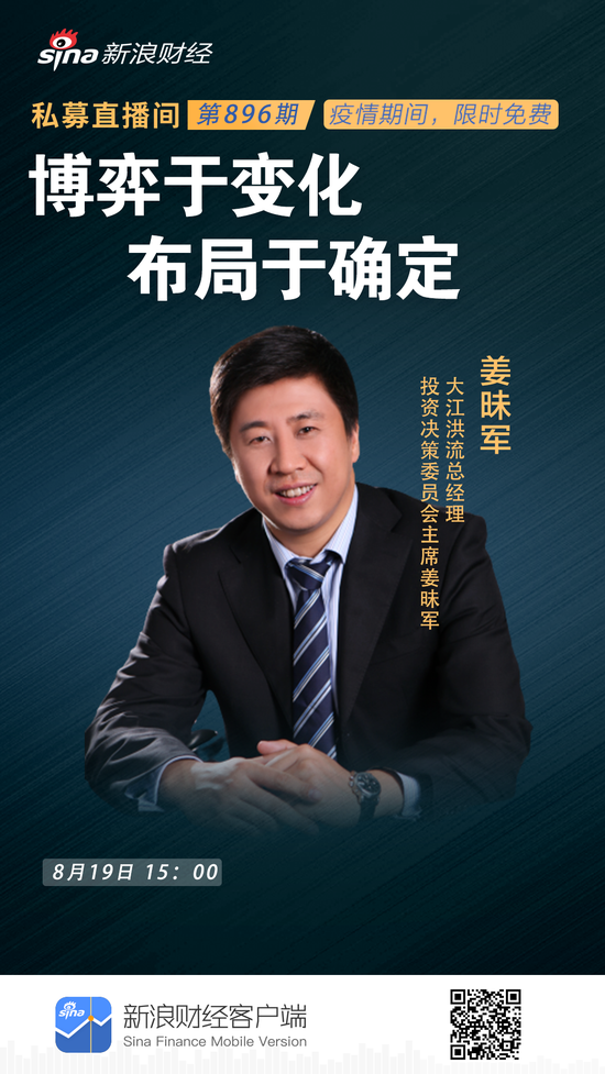 近日,险资派大佬大江洪流总经理、投资决策委员会主席姜昧军再次做客新浪财经《私募直播间》,分享主题:博弈于变化,布局于确定。