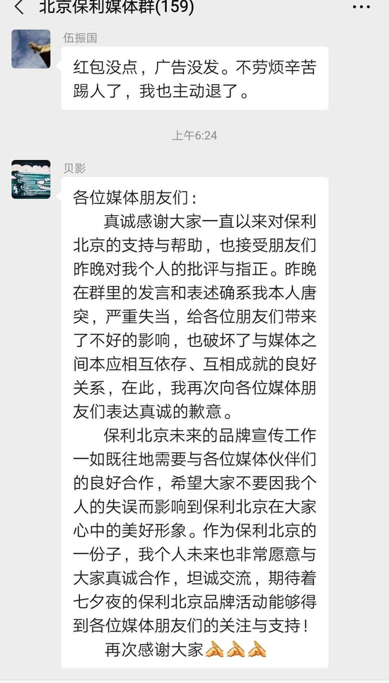 从昨晚开始,保利媒体沟通群的聊天记录截图被疯转。