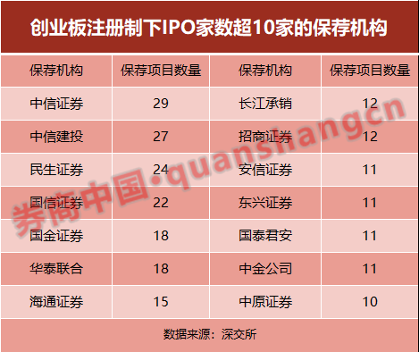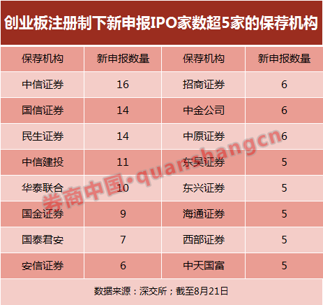 截至8月20日,深交所已受理365家企业的创业板注册制首发上市申请。从保荐机构项目排名情况来看,共有4家投行保荐项目数量超过20家。