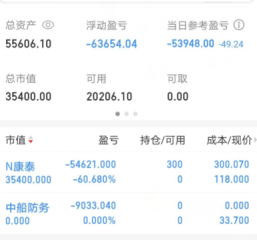 另一张截屏浮盈良好,在N康泰第一波腰斩时截屏,彼时浮盈超630万,总资产过千万,想来“金主”截屏时也是喜不自胜,但没料不久后,又一波腰斩,从高位308元跌落,仅报收118元。