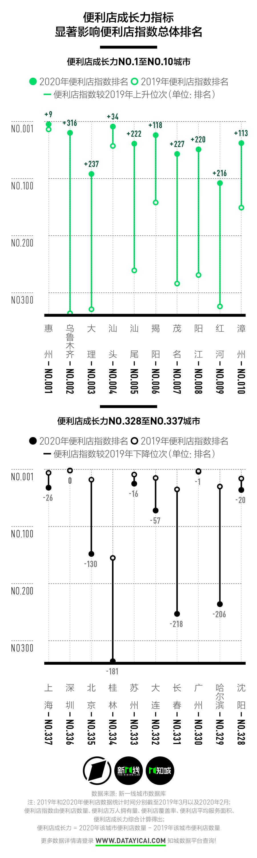 便利店成长力指标的变动也导致了一些城市在便利店指数排名上波动较大。