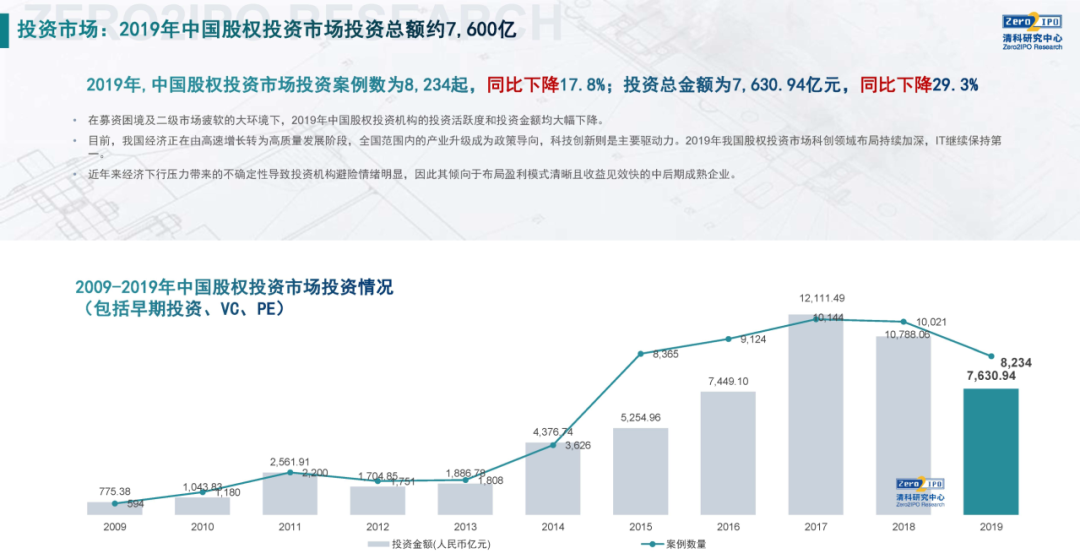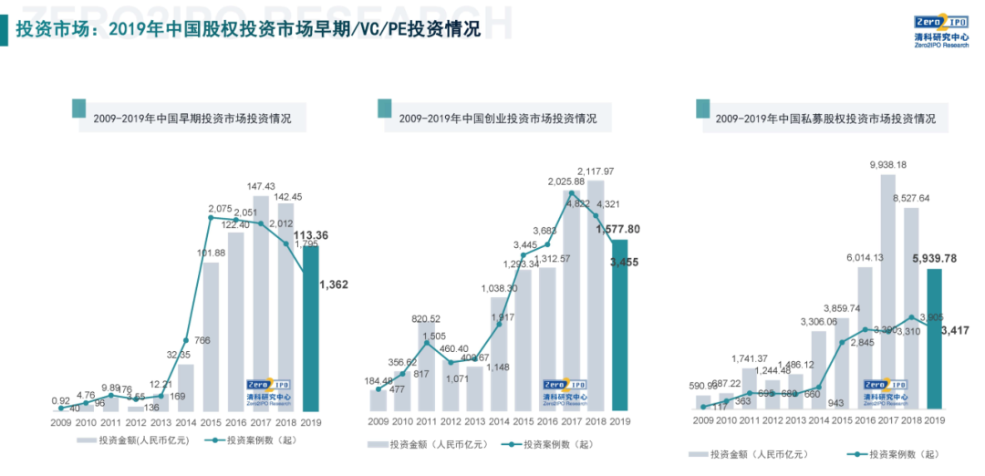2009年~2019年中国股权投资市场早期/VC/PE投资情况