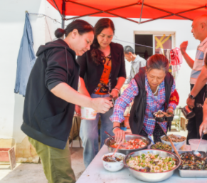 小区居民们搭伙一起吃饭