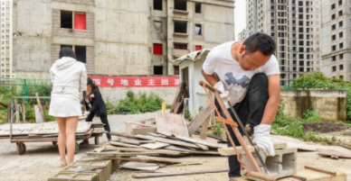 陈艳春:我刚住进来的时候也有业主在修楼梯,我就把之前做餐馆的锅碗瓢盆都拿来了,对大家说中午不要回家吃饭了,可以在这边休息会儿,然后又打扫了两三间工棚出来。