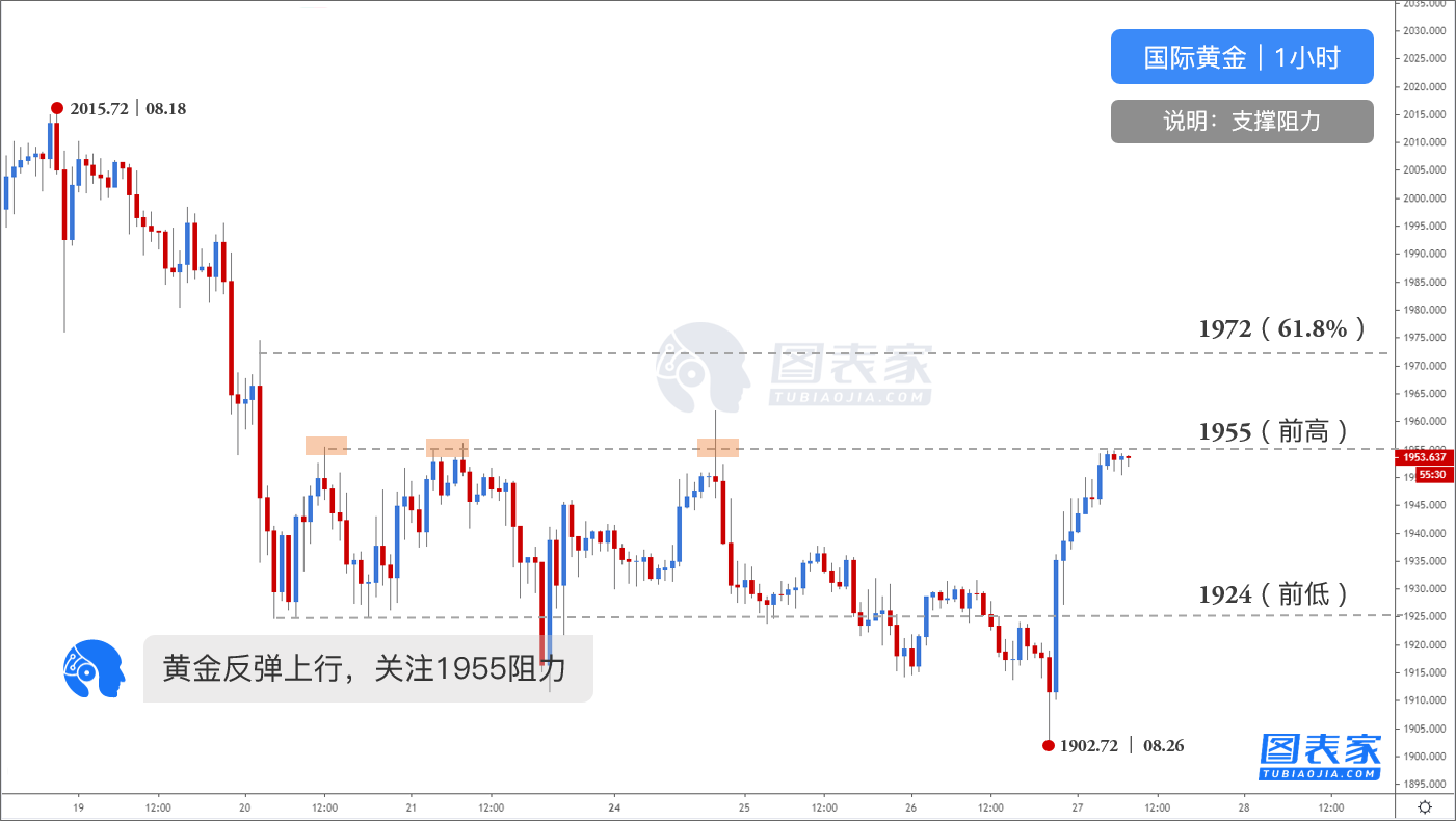 热点栏目原标题:技术图表:黄金反弹上行,关注1955阻力 来源:图表家