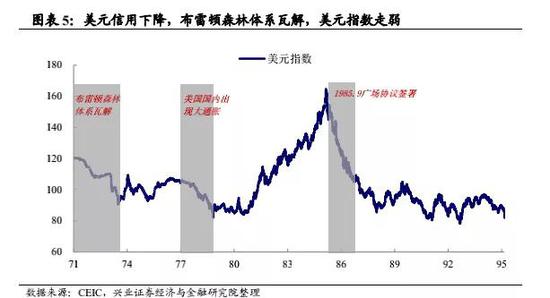 美元贬值的前提是维持美元信用体系的稳定。美元贬值的成本在于贬值的过程是对美元信用的一种稀释,换句话说,美元变得越来越不值钱的情况下,他国会意识到持有美元是“赔本生意”,进而不愿意持有美元,则美元的特殊地位就会丧失。因此,美国需要去避免这种情况的发生。在布雷顿森林体系瓦解之前,货币体系的定价核心天然是黄金,而美元绑定黄金也自然成为了全球货币体系的锚。黄金体系瓦解之后,美元想继续保持其全球货币锚的地位,就意味着美国需要始终掌握对核心生产要素的定价权或者控制权。20世纪70年代开始,这一核心要素逐渐切换至石油,而未来,这一核心要素可能会向数据资源转变(在后文将详细讨论),成为美国需要抢占的高地。