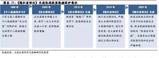 而美元贬值的一个前提是美元寻到下一个“锚”——数据。当今时代,数据正在逐步取代石油成为最有价值的资源。而后疫情时代,数据的重要性进一步凸显。如果说未来数据是全球核心生产要素,那么正如70年代后美国对中东石油的控制,美国也需要控制数据这一全球核心的生产要素。从这个角度来看,欧盟逐渐觉醒的数字化意识与中国快速发展的数字经济使美国寻求数字霸权面临挑战。因此,也不难理解为何美国对于欧盟征收数字税以及中国数字经济“出海”有如此剧烈的政策反弹。