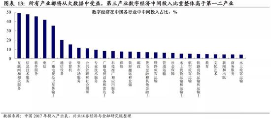 当今时代,数据正在逐步取代石油成为核心生产要素。互联网和移动智能手机的兴起,使信息的记录越来越数字化,而且信息之间的联动性越来越高,具有高度共享的特质。大体量、多类型、低价值密度、及快处理速度的大数据,有助于更精确的需求画像和更有效的供给优化,从而提供了极高的核心商业价值,且理论上所有产业都能从中受益。轻资产服务业的数字化成本和难度相对较低,因此第三产业数字经济中间投入比重整体要高于第一二产业。而受益于数据的网络效应,科技公司迅速成长,取代石油公司成为标普500权重股领头羊,目前标普500权重股前五公司均为科技巨头,在整体指数中占比超过25%。