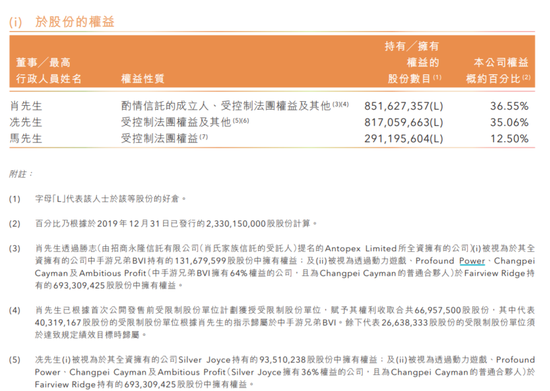 公司董事长肖健与一致行动人合计持股公司36.5%的股权,控制公司8.52亿股股份。