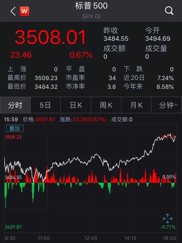 受美联储周四公布的新政策框架消息提振,美股周五高开高走,标普500指数盘中创下3509.23点的新高,为该指数近20年来首次突破3500点,收盘价也创下新高。