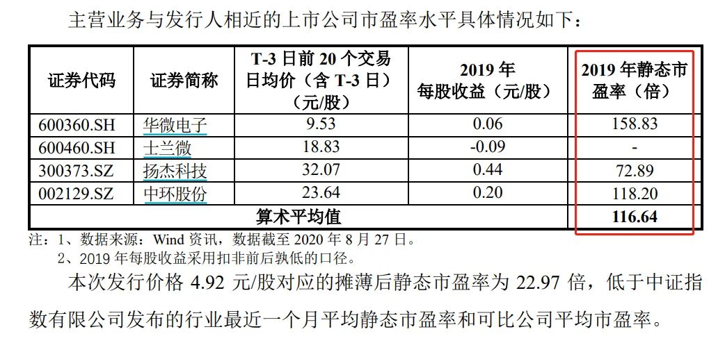 立昂微主要从事半导体硅片和半导体分立器件芯片的研发、生产和销售,以及半导体分立器件成品的生产和销售。立昂微是国内主要的半导体硅片生产厂商之一,控股子公司浙江金瑞泓2015 年至2017 年在中国半导体材料十强企业评选中均位列第一名。立昂微的发行市盈率仅为23倍,而目前同行的华微电子、中环股份、士兰微等市盈率都在百倍以上。