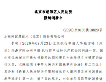 不仅仅是甘薇。据中国执行信息公开网消息,因乐视网信息技术(北京)股份有限公司未按执行通知书指定的期间履行生效法律文书确定的给付义务,法院依照相关规定,对乐视网信息技术(北京)股份有限公司采取限制消费措施,限制乐视网信息技术(北京)股份有限公司及法定代表人刘延峰不得实施以下高消费及非生活和工作必需的消费行为。